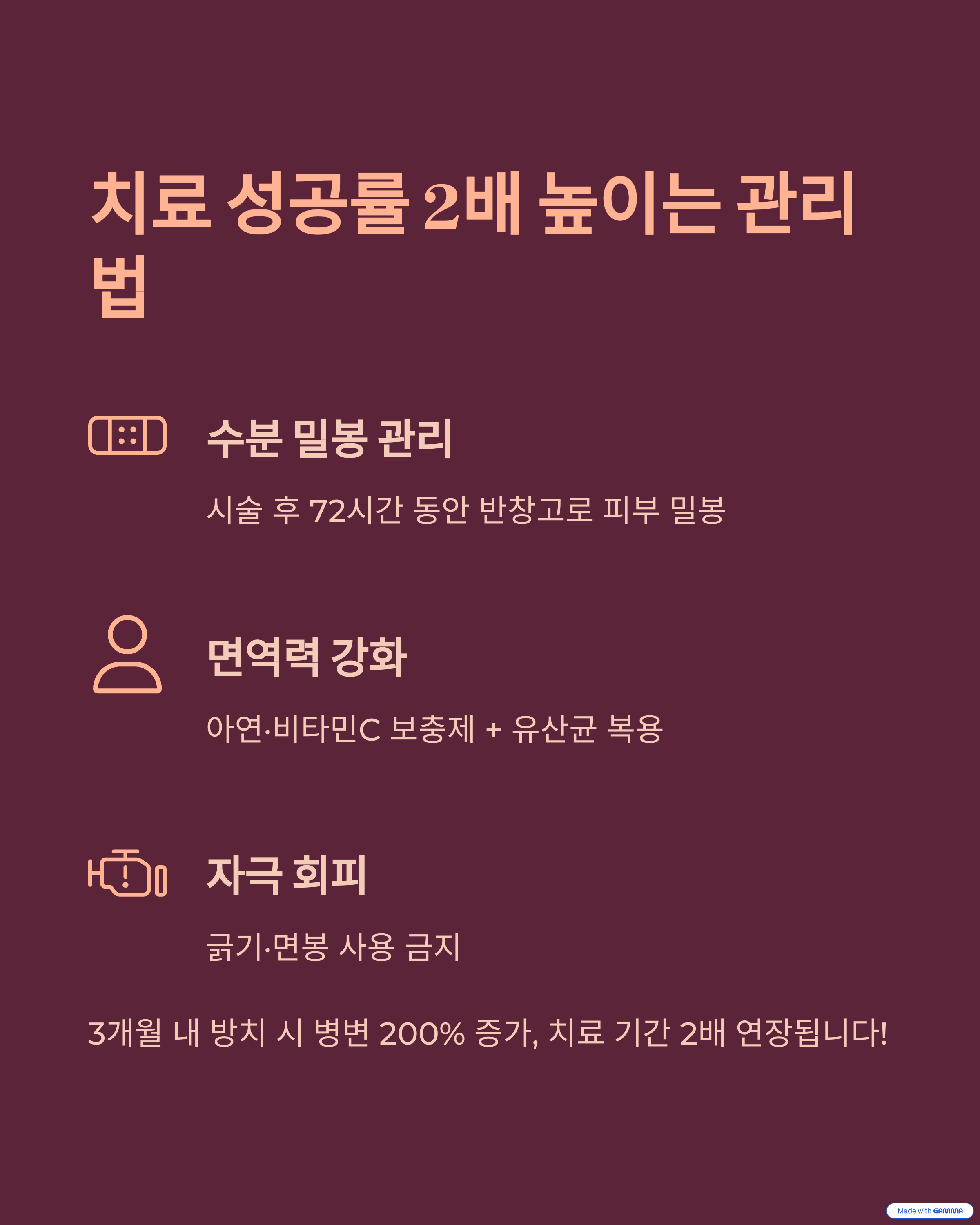 - 수분 밀봉 관리: 시술 후 72시간 동안 반창고로 피부 밀봉