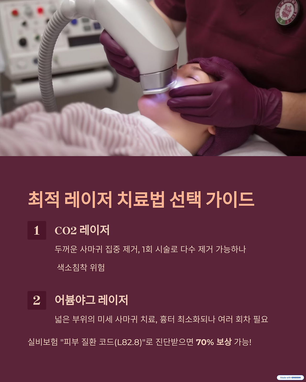 → A: 어븀야그 사용 시 95% 무흉터. CO2는 색소 관리 필수. - Q: 가장 저렴한 치료법은?